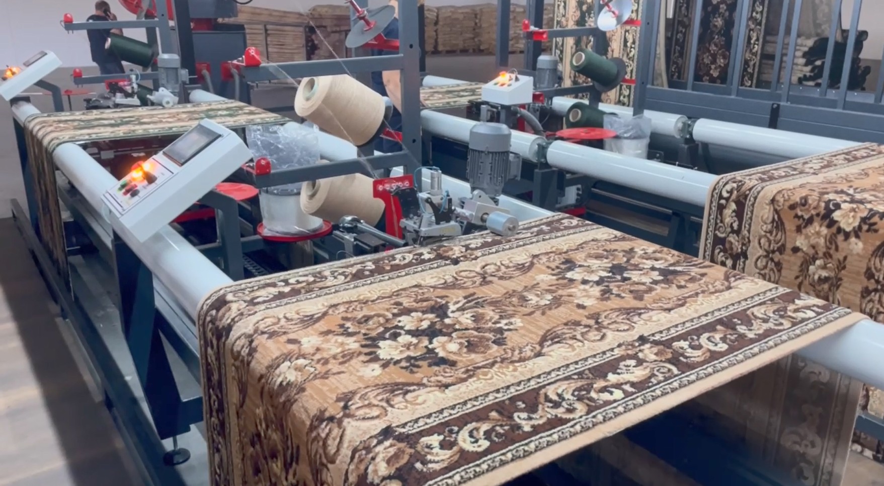Bu makinemizde iki adet halı aynı anda ve birbirinden bağımsız olarak overlok yapılabilmektedir, yada istendiği takdirde bir adet 3 metre eninde yada daha büyük enlerde halılar overlok yapılabilmektedir. Hız kontrollü ve metraj ölçümlü olarak dizayn edilen makinemiz tam otomatik olup, bütün fonksiyonları Plc ekran ile kontrol edilebilmektedir, makinenin ana prensibi dokunmuş olan halıların sağ ve sol kenarlarını overlok etmektir